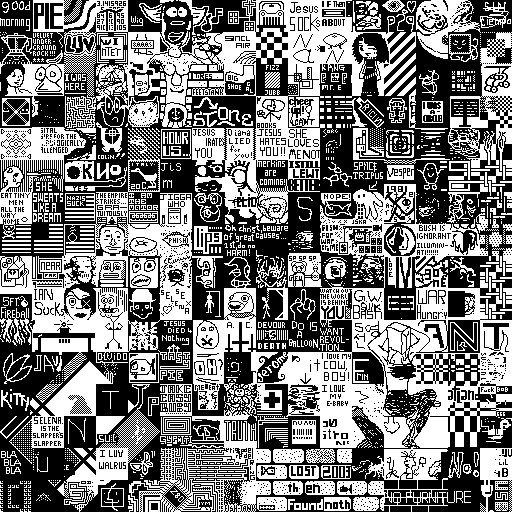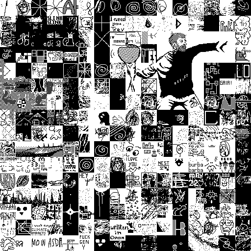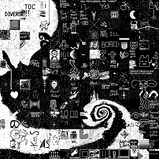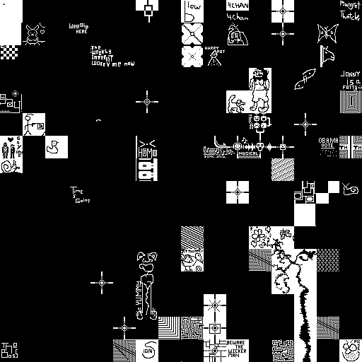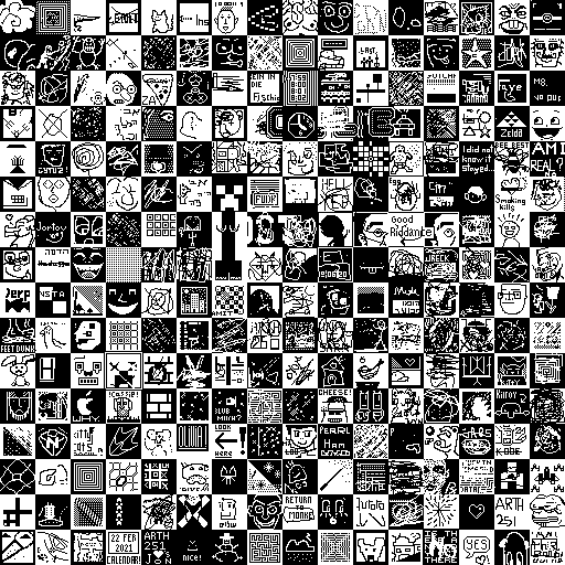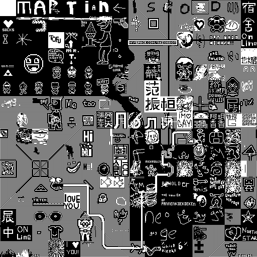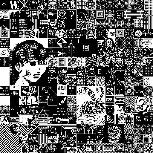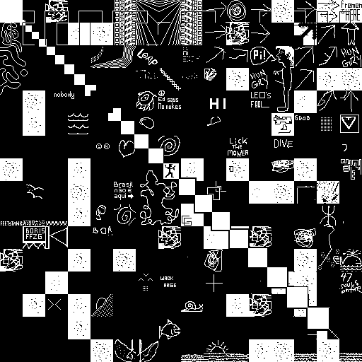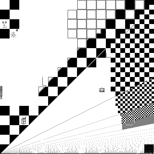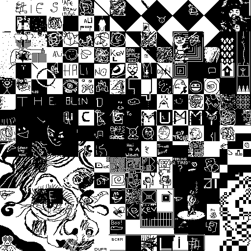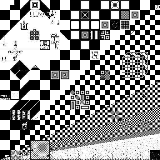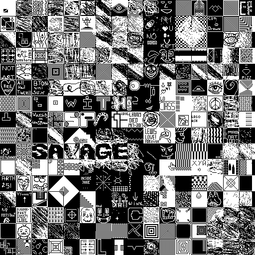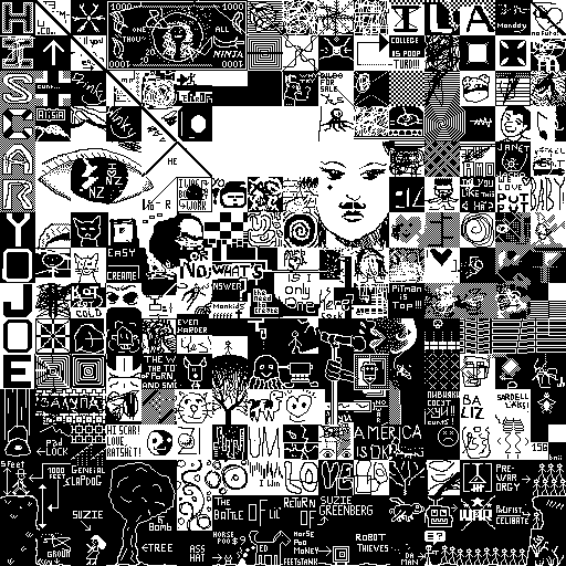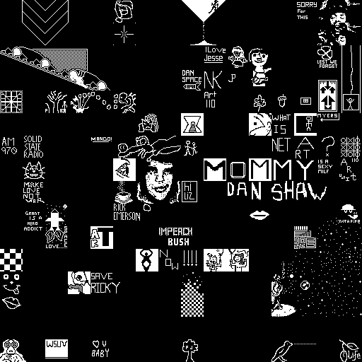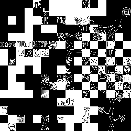 Notes: Most software plays these animated GIF files a bit slowly because they contain thousands of frames. The Linux program xanim plays them well. The whole (time-lapse) retrospective history of the work can be exhibited as a projection. [Help]