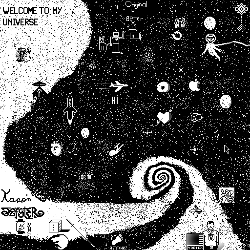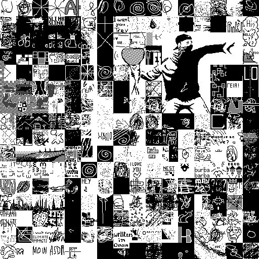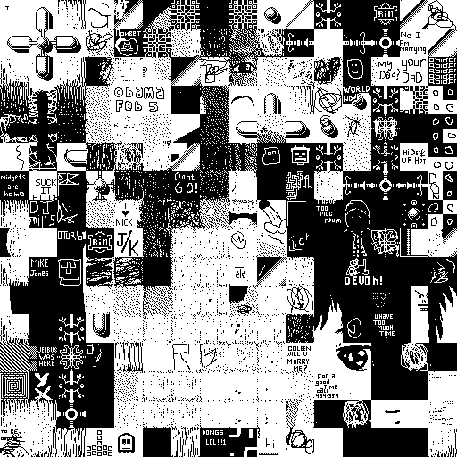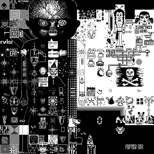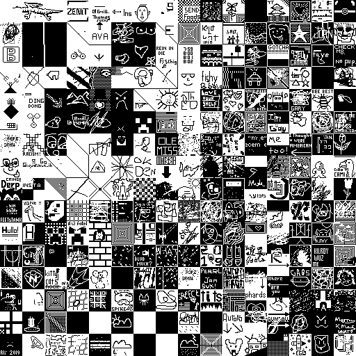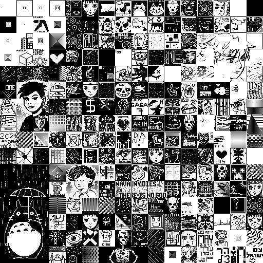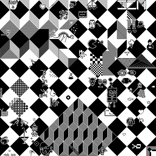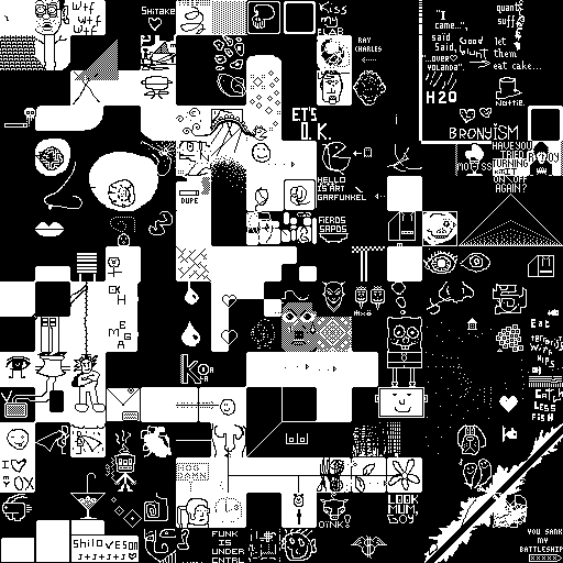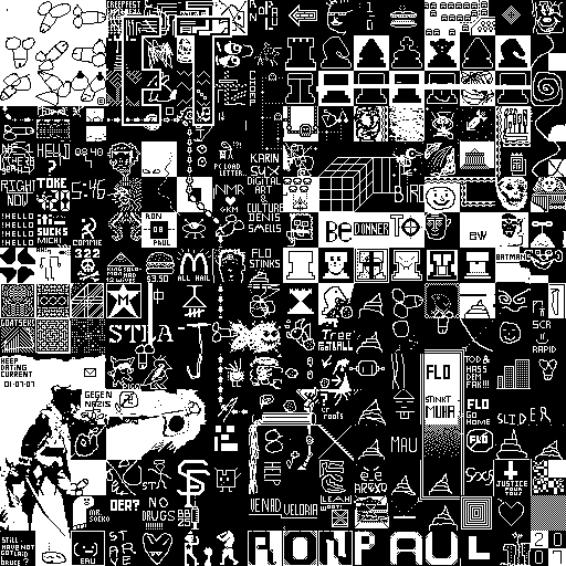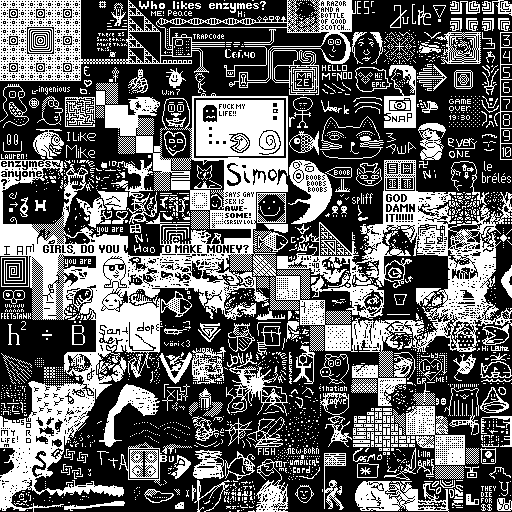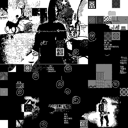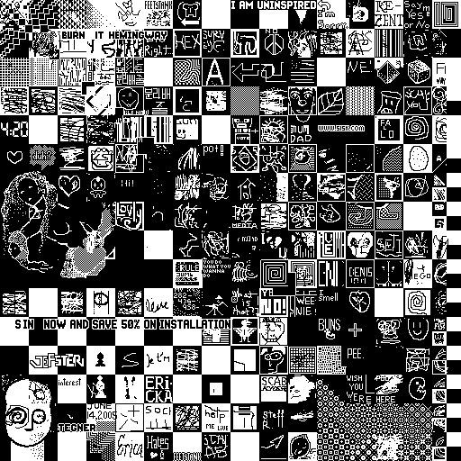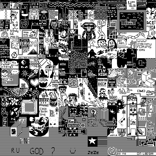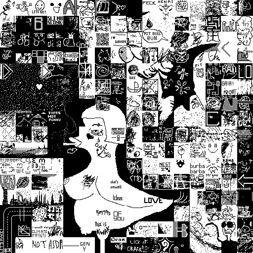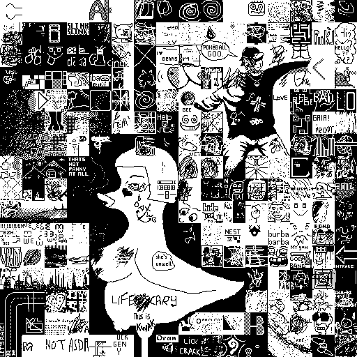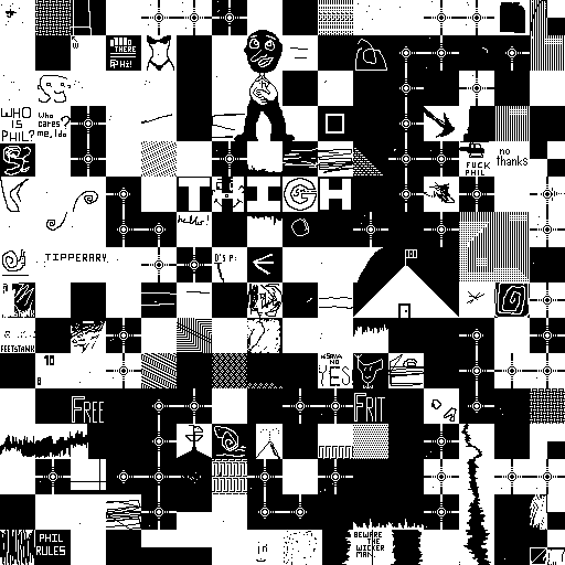 Notes: Most software plays these animated GIF files a bit slowly because they contain thousands of frames. The Linux program xanim plays them well. The whole (time-lapse) retrospective history of the work can be exhibited as a projection. [Help]