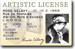 | Produce your own Artistic License in a matter of minutes using your web browser. Instead of biometrics and radio frequency ID chips, Artistic License embraces freedom, collaboration, sharing, and imagination as keys to a more appealing modernity. Your Artistic License doesn't require you to look like yourself, and it does not impose factual restrictions. Nonetheless it has the truthiness coveted by authority. Join the hundreds who have already made theirs. | ![]() |